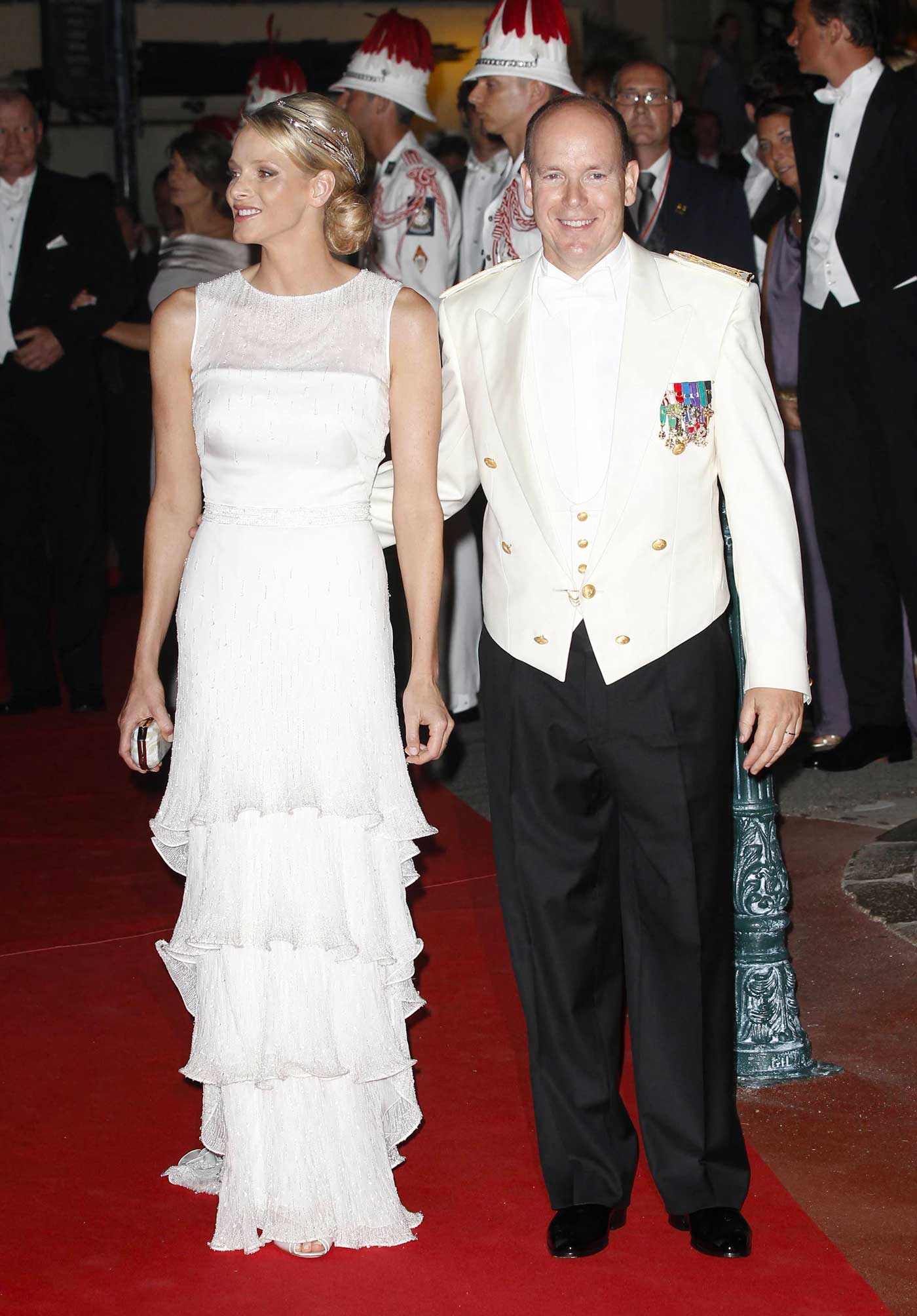 La princesse Charlène avait porté ce diadème pour la première fois lors de sa soirée de mariage le 2 juillet 2011. Le diadème était porté sur le côté. Elle portait une robe Armani à volants (Photo : Guibbaud-Nebinger-Orban/ABACAPRESS)