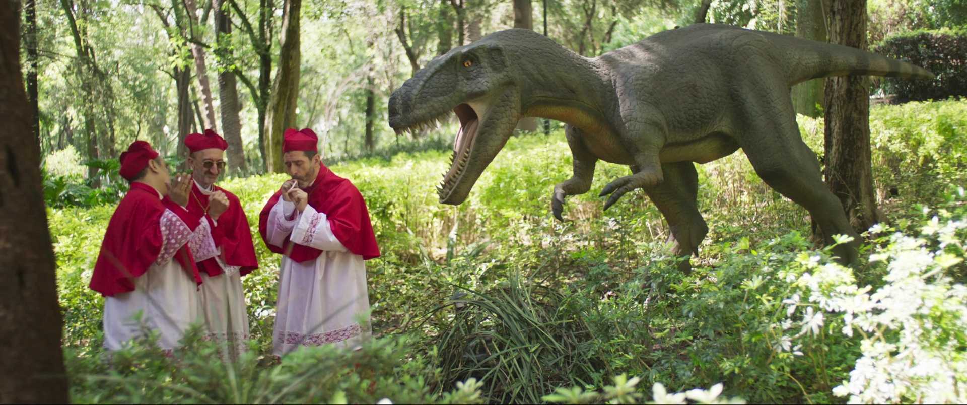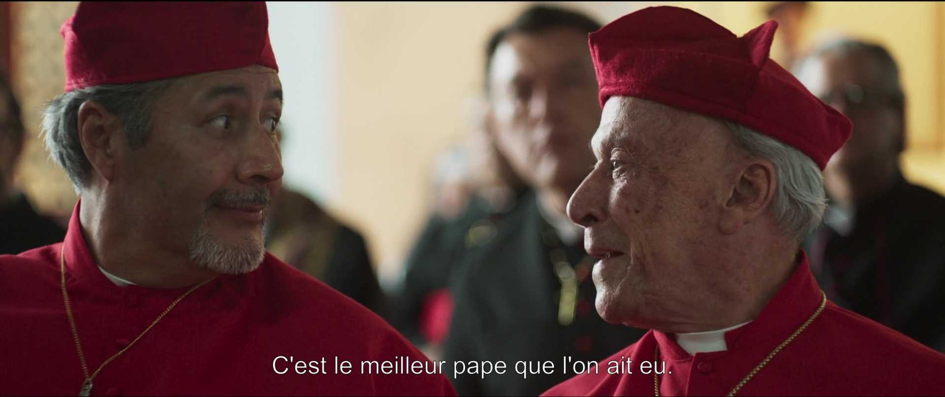 Il y a quelques idées qui surnagent dans le film, même si très peu aboutissent vraiment. On pense par exemple à la scène où le pape et les cardinaux rencontrent deux consultants aux dents longues qui alignent les propositions très “start-up nation” pour renflouer les finances de l’église, suggérant sur un ton faussement compassé de licencier 30% des curés, de louer la Chapelle Sixtine pour des événements d’entreprise et de lancer une cryptomonnaie, le “Vaticoin” (alors que “Christomonnaie” était juste là !). Une scène qui aurait vraiment pu être drôle mais que l’écriture et la réalisation n’arrivent pas à amener au niveau, et que le montage achève en l’abrégeant tout juste alors qu’elle montait en puissance.