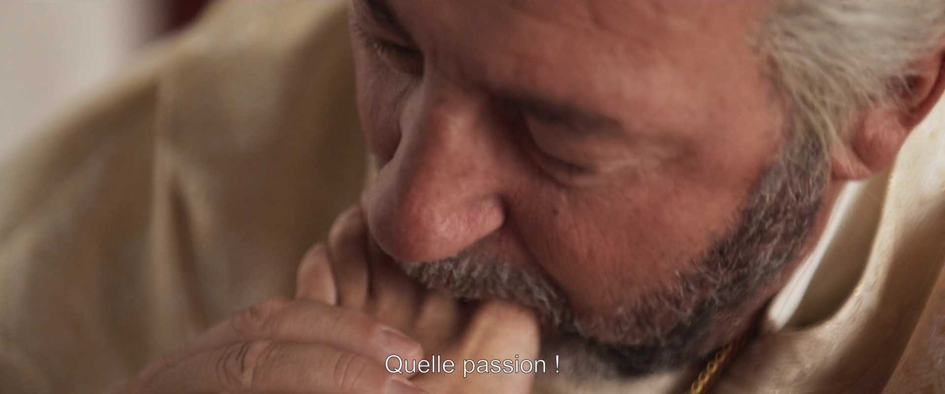 Et puis il y a la scène qui a le plus fait parler, et qui le mérite : celle où Kad Merad, dans le personnage de Slim le sosie, se retrouve à dire la messe et, n’ayant pas compris le rituel du lavage des pieds, suce goulûment les orteils des cardinaux. Celle-là, il faut le dire, elle est extraordinaire. C’est tout ce que le film aurait pu, aurait dû être. Kad Merad est absolument déchaîné, mettant tout son coeur à l’ouvrage, avalant quinze centimètres de panard avec une expression entre dégoût et sensualité d’une justesse absolue, la réaction des cardinaux passant de la surprise à l’extase est parfaite, la séquence est minutée précisément pour que la gêne se transforme en fou rire. C’est, à mon avis, un vrai grand moment de comédie.