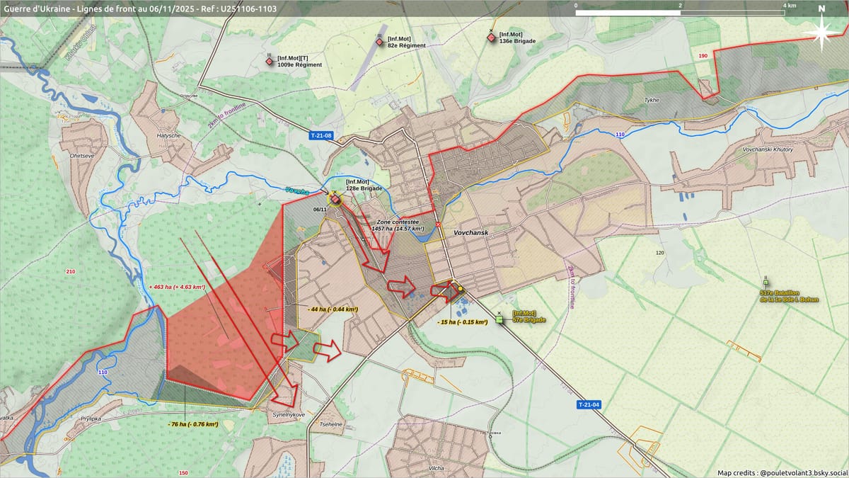 Front de Kharkiv : Sans changement rapporté par Poulet Volant à Vovchansk (carte). Sans changement à Lyptsi (carte)