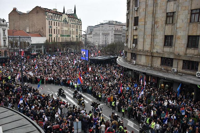 Dans l’après-midi, des milliers de manifestants ont protesté dans les rues de Belgrade. Le cortège spontané s’est dirigé vers le gouvernement et le bureau du procureur aux cris de « Vous ne nous écraserez pas » et « démission ».