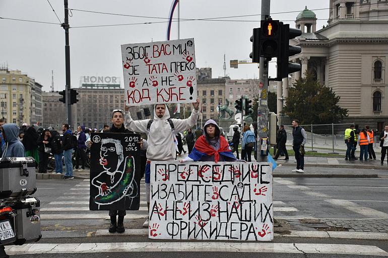 Les lycéens ont été les premiers à se mobiliser, bloquant leurs écoles pendant deux jours pour la rejoindre. Mardi soir, plusieurs figures de la scène artistique serbe se sont rassemblées devant le Parlement pour lui manifester leur solidarité.