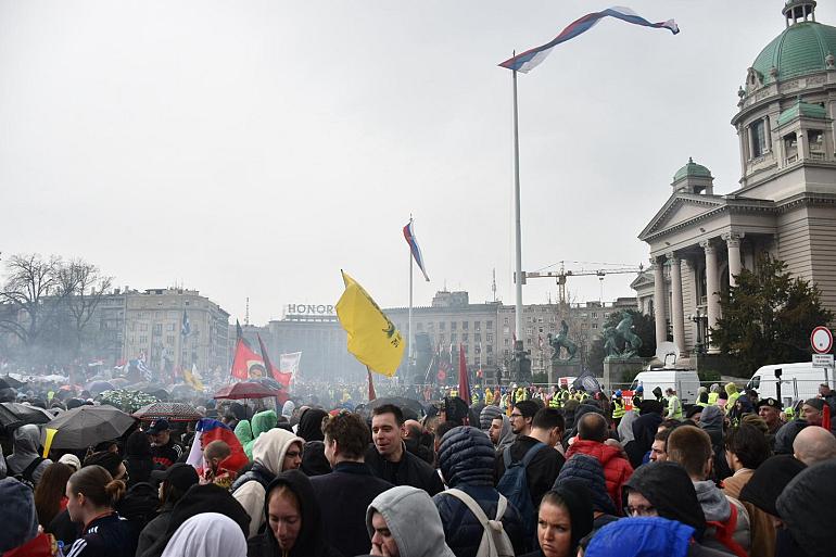 Une altercation a éclaté, mais la police est intervenue et a séparé les deux groupes. Dans la soirée, Dijana Hrka s’est adressée à la police au mégaphone, leur signifiant qu’ils seraient tenus responsables de ces incidents. La situation s’est apaisée avec un important déploiement policier. Une quinzaine de gendarmes et de fourgons de police ont également été aperçus dans les rues autour du Parlement serbe.