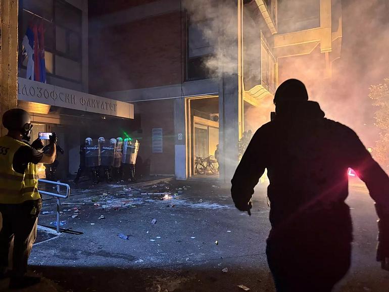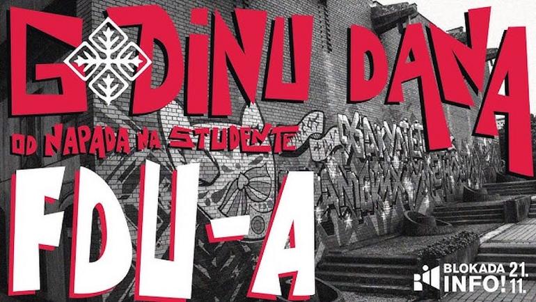 Un étudiant de la Faculté des Sciences de Novi Sad, Vukašin Đinović, jeune mathématicien et physicien primé, a été blessé après avoir reçu un violent coup de bouclier au visage. Couvert de sang, il affirme avoir été frappé « sans aucune raison ».