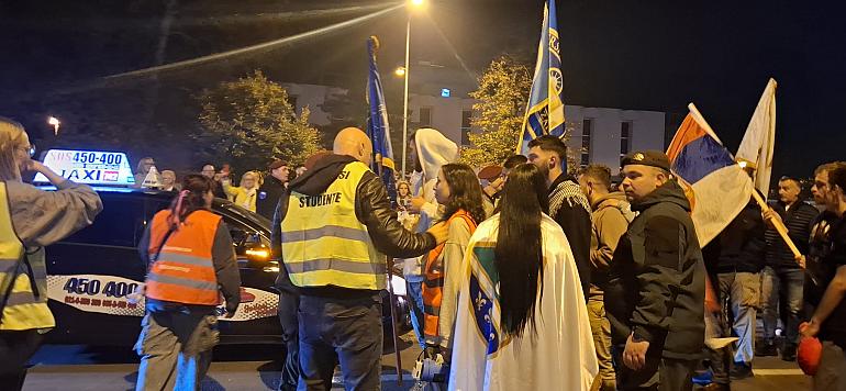 Les tensions ont continué dans les rues adjacentes. En soirée, le dispositif policier autour du siège du gouvernement provincial était réduit, tandis que les soutiens de Jaćimović et de Dijana Hrka restaient rassemblés près des tentes installées devant la Banovina.