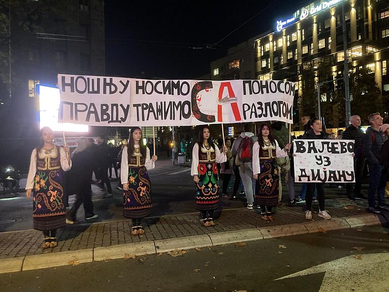 « Nous portons notre costume avec fierté, nous demandons la vérité avec raison. Valjevo avec Dijana. »
