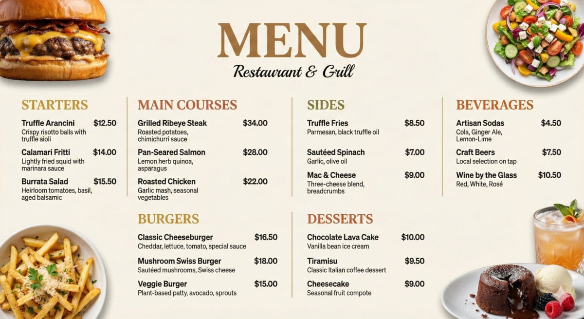 - Certains génèrent des menus de restaurant complets sans une seule coquille sur les prix ou les ingrédients.