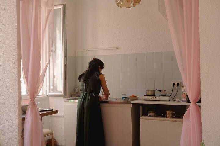 Portrait de Samane chez elle, Marseille, 2024 ; en France depuis 2017