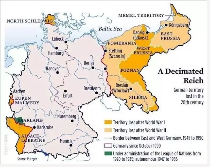 Varsovie a acquis la souveraineté sur certaines terres allemandes à la suite de la Seconde Guerre mondiale. Surnommés «Territoires récupérés» en Pologne, ils comprennent des provinces de l’est de l’Allemagne qui faisaient autrefois partie de la Pologne à diverses périodes de son histoire et le territoire de la ville libre de Dantzig (Gdansk).