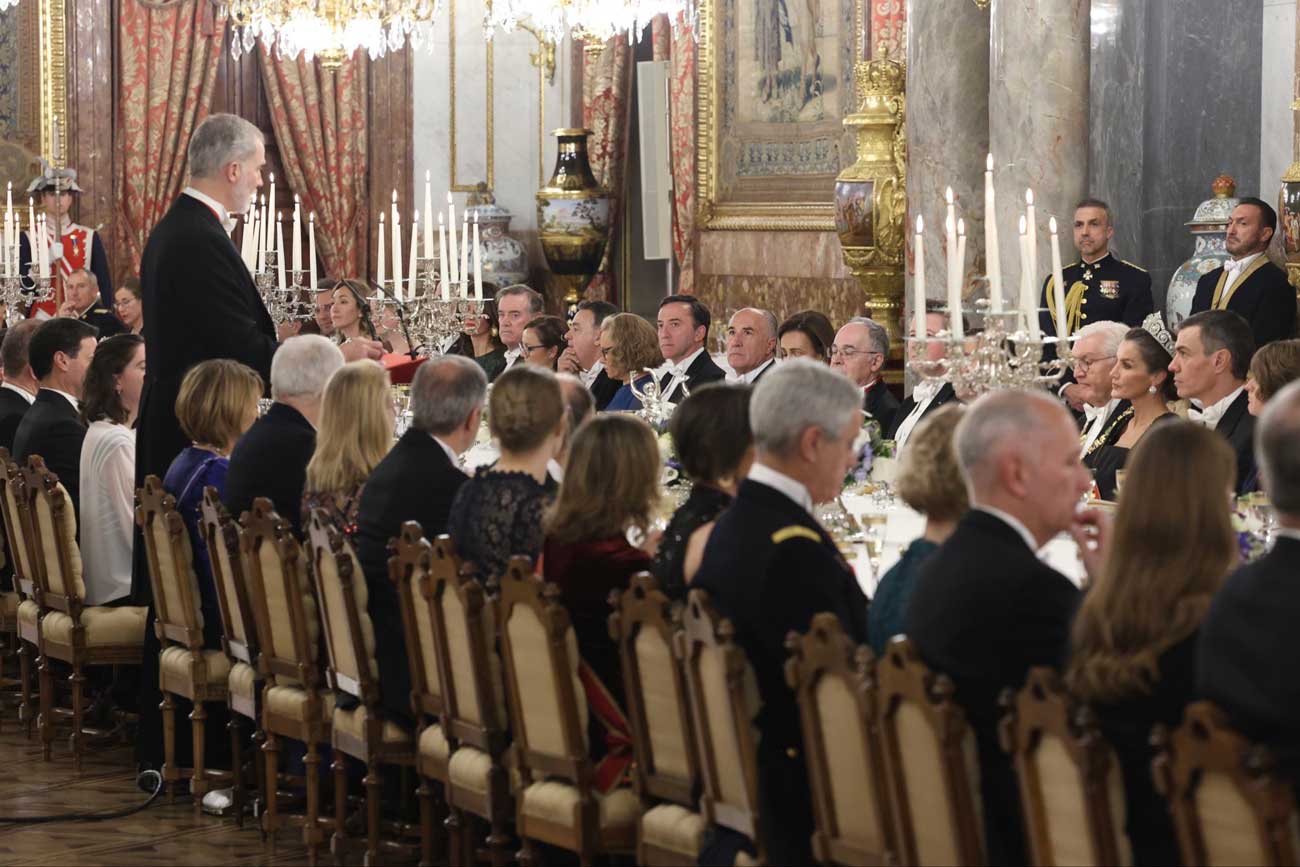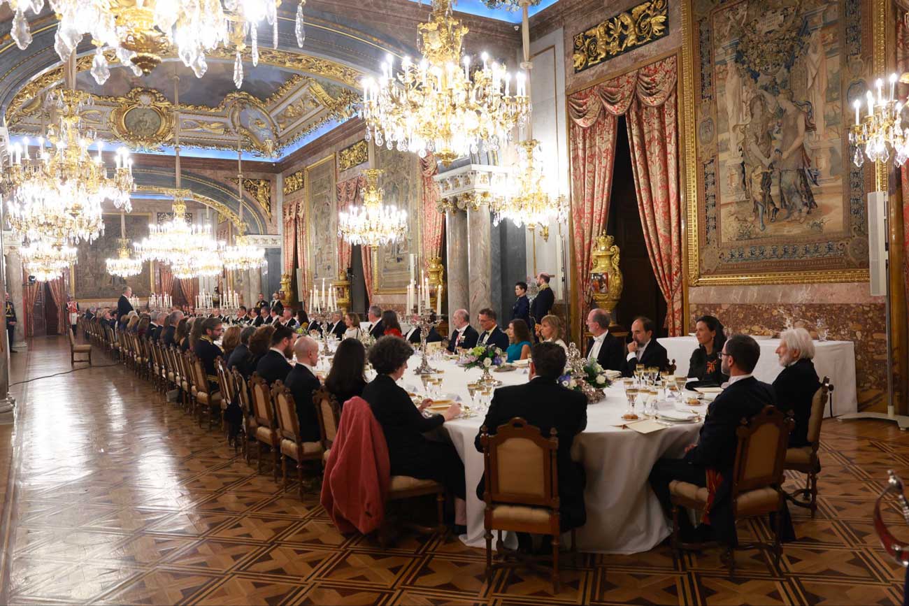Les convives sont installés autour d’une seule grande table au palais royal (Photo : Casa de SM el Rey)