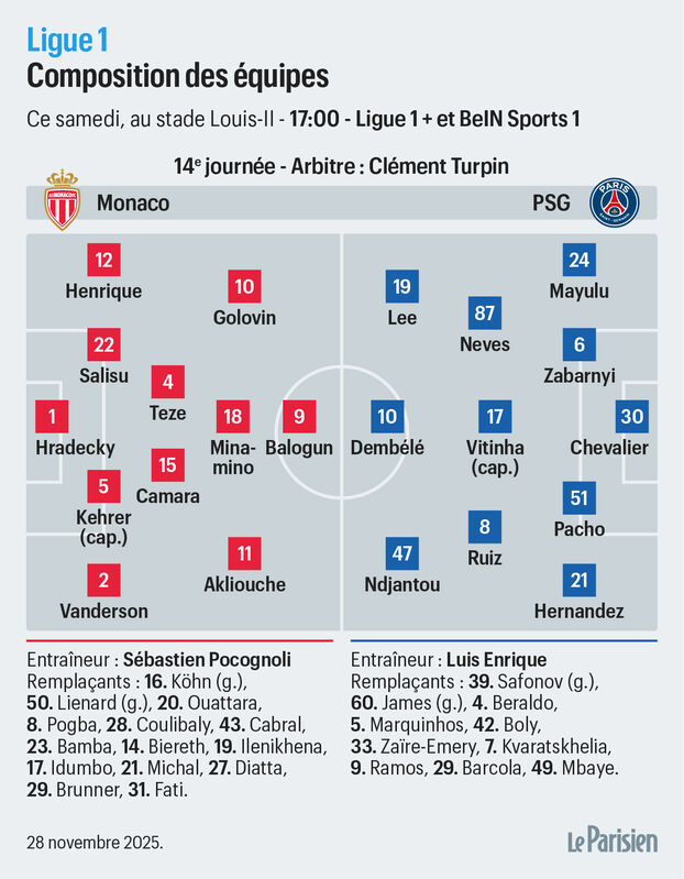 Le déplacement sur la pelouse de l’AS Monaco, 8e de Ligue 1 et tenu en échec par Pafos cette semaine (2-2), est pris au sérieux par les Parisiens qui comptent garder leur fauteuil de leader à l’issue de cette 14e journée.