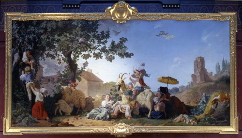 C’est donc un ravissant petit tableau en grisaille qui rejoint le musée qui conserve ce qui est sans doute la plus grande composition (ill. 2) de ce peintre : Les Amusements de l’enfance, immense toile de plus de trois mètres sur six qui devait être traduite en tapisserie à la manufacture des Gobelins, projet qui ne fut jamais mené à terme sous le règne de Louis XV, ce qui aboutit à son dépôt à Amiens lors de l’inauguration de ce qui portait alors le nom de « Musée Napoléon » en 1864. Trônant au-dessus de l’une des portes du Grand Salon de l’actuel « Musée de Picardie », ce chef-d’œuvre – étrillé cette fois par Diderot au même Salon de 1761 – y domine son admirable accrochage.
