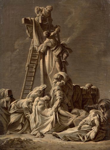 28/11/25 – Acquisition – Amiens, Musée de Picardie – On ne peut que suivre Diderot : « Il y a de l’esprit, du mouvement et de la chaleur dans l’esquisse de la Descente de Croix » (ill. 1) que Jean-Jacques Bachelier présenta au Salon de 1761, et qui refit une apparition remarquée sur le marché parisien. Proposée mardi par Artcurial, après les grands tableaux de Guido Reni et Jean-François de Troy (voir la brève du 23/11/25), adjugés à des prix records, la Descente de croix y récolta plus modestement 10 000 € marteau [1] et fut immédiatement préemptée par le directeur du Musée de Picardie d’Amiens, dont il faut encore une fois saluer le goût et le dynamisme. Fidèle mécène des institutions françaises, la Fondation La Marck assura financièrement cet achat : il faut à nouveau répéter combien un musée qui achète bien sait attirer les dons puis les mécènes, enclenchant un cercle vertueux qui finit bel et bien par profiter à tous.