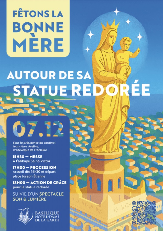 Pour célébrer la fin de ces travaux historiques, le diocèse de Marseille, sous la présidence du Cardinal Aveline, organise une après-midi religieuse et festive, avec en point d’orgue, un spectacle son et lumière qui illuminera la Bonne Mère plus belle que jamais.