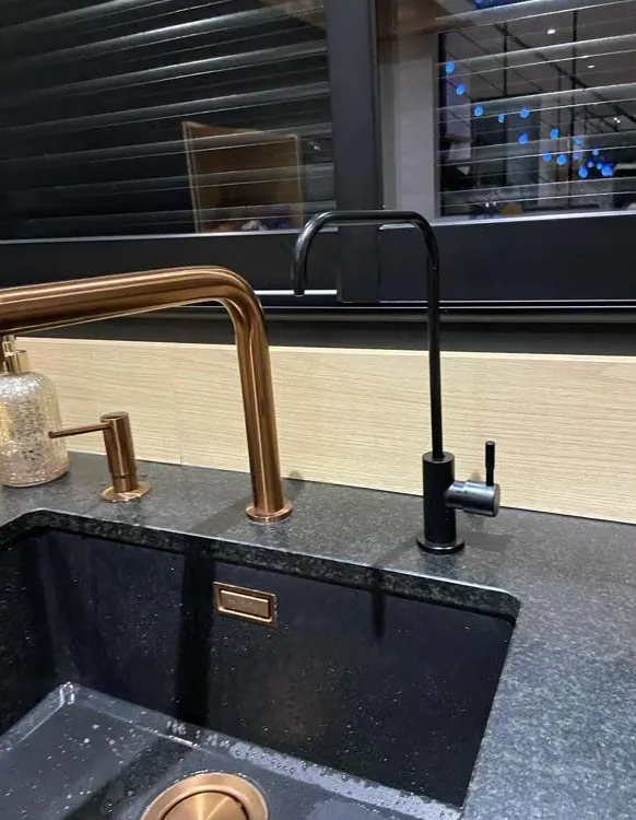 Développée dans les années 1950, cette technique filtre les impuretés grâce à une membrane semi-perméable. « Le préfiltre retient les particules, puis la membrane bloque pesticides, médicaments et nitrates », détaille Florian Ulvoas. Installé sous l’évier, le purificateur convient à tous, des nourrissons aux personnes âgées, et même aux personnes souffrant d’eczéma (avec un raccordement adapté pour la douche).