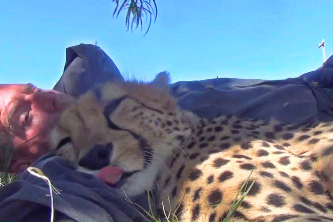 Eden, femelle guépard naturellement curieuse, remarqua ce visiteur endormi. Intriguée par cette présence inhabituelle, elle s’approcha prudemment pour l’examiner. Ses sens aiguisés lui confirmèrent que cet humain ne représentait aucun danger. Les légers coups de tête affectueux du félin réveillèrent délicatement le photographe.