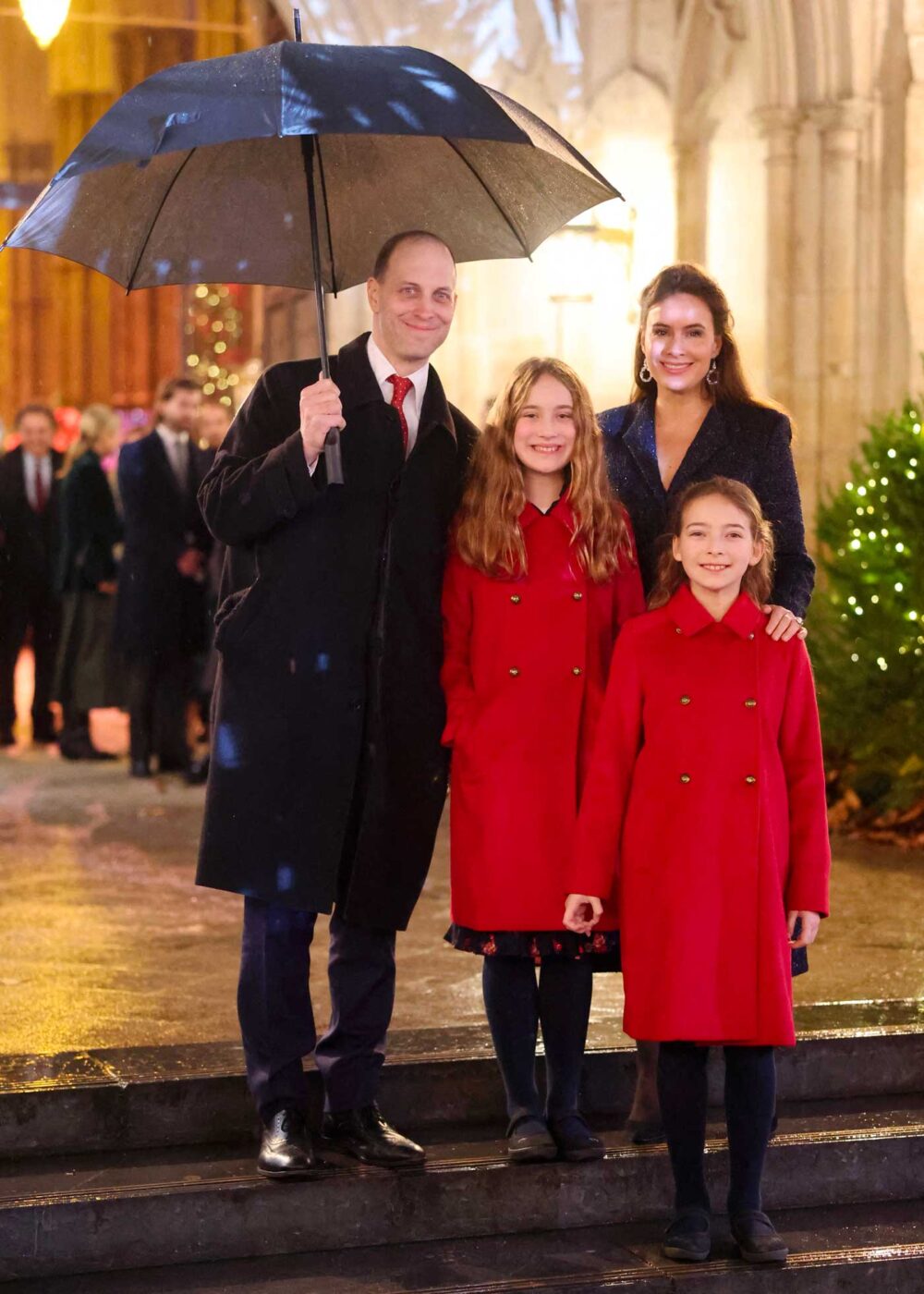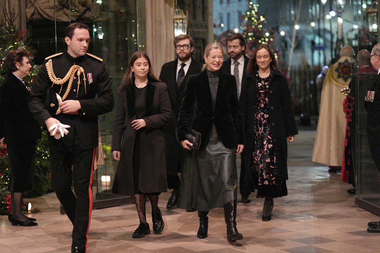 La princesse de Galles et le prince William sont arrivés avec leurs enfants, le prince George, la princesse Charlotte et le prince Louis. La duchesse d’Édimbourg est arrivée seule à l’abbaye de Westminster dans son long manteau bordeaux. Le prince Michael de Kent, cousin germain de la reine Elizabeth II, est arrivé en chaise roulante poussée par son écuyer. Lord Frederick Windsor, fils du prince Michael, était accompagné de son épouse Sophie, et de leurs deux filles, Maud et Isabella Windsor. Lady Helen Windsor, fille du duc de Kent, a assisté au concert avec ses enfants Columbus, Cassius, et Eloise Windsor. Lady Marina Windsor, fille du comte de St Andrews, accompagnait sa tante Helen.