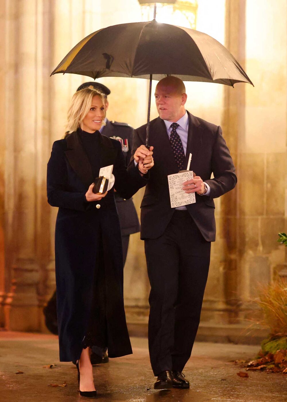 Zara et Mike Tindall, la fille et le beau-fils de la princesse Anne à la sortie de l’abbaye (Photo : Chris Jackson/PA Wire/ABACAPRESS)