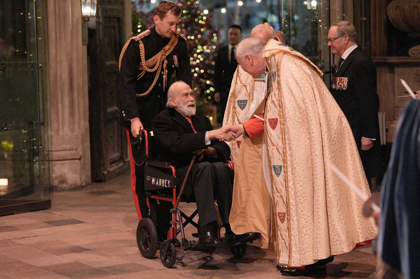 Le prince Michael de Kent est accueilli par le clergé à son entrée dans l’abbaye (Photo : Aaron Chown/PA Wire/ABACAPRESS)