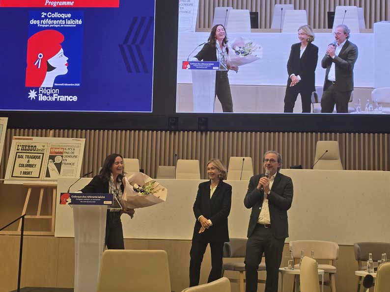 La journée se conclura, annonce-t-elle déjà, par un hommage à Samuel Paty avec la remise du premier Prix national de la laïcité de la Région à Émilie Frèche, Muriel Mayette-Holtz et Carole Bouquet pour leur pièce Le Professeur, consacrée aux derniers jours de l’enseignant assassiné.