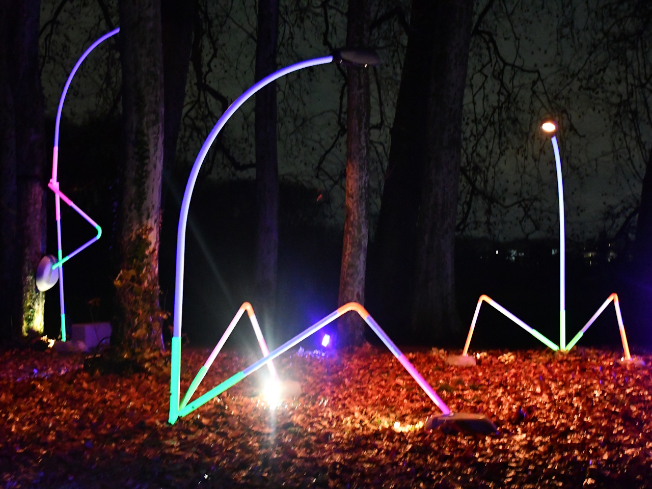 Autant vous dire qu’il faut s’armer de patience une nouvelle fois pour accéder au parc de la Tête d’Or et son très attendu spectacle de drones. Afin de faire patienter les visiteurs, un cheminement a été mis en place depuis l’entrée au niveau de la Porte Tête d’Or sur le boulevard des Belges. Petite déception pour les œuvres installées le long du parcours, notamment Journey of a Lamp Post. « Ce sont des sauterelles ? », a-t-on pu entendre. Non juste des lampadaires courbés…