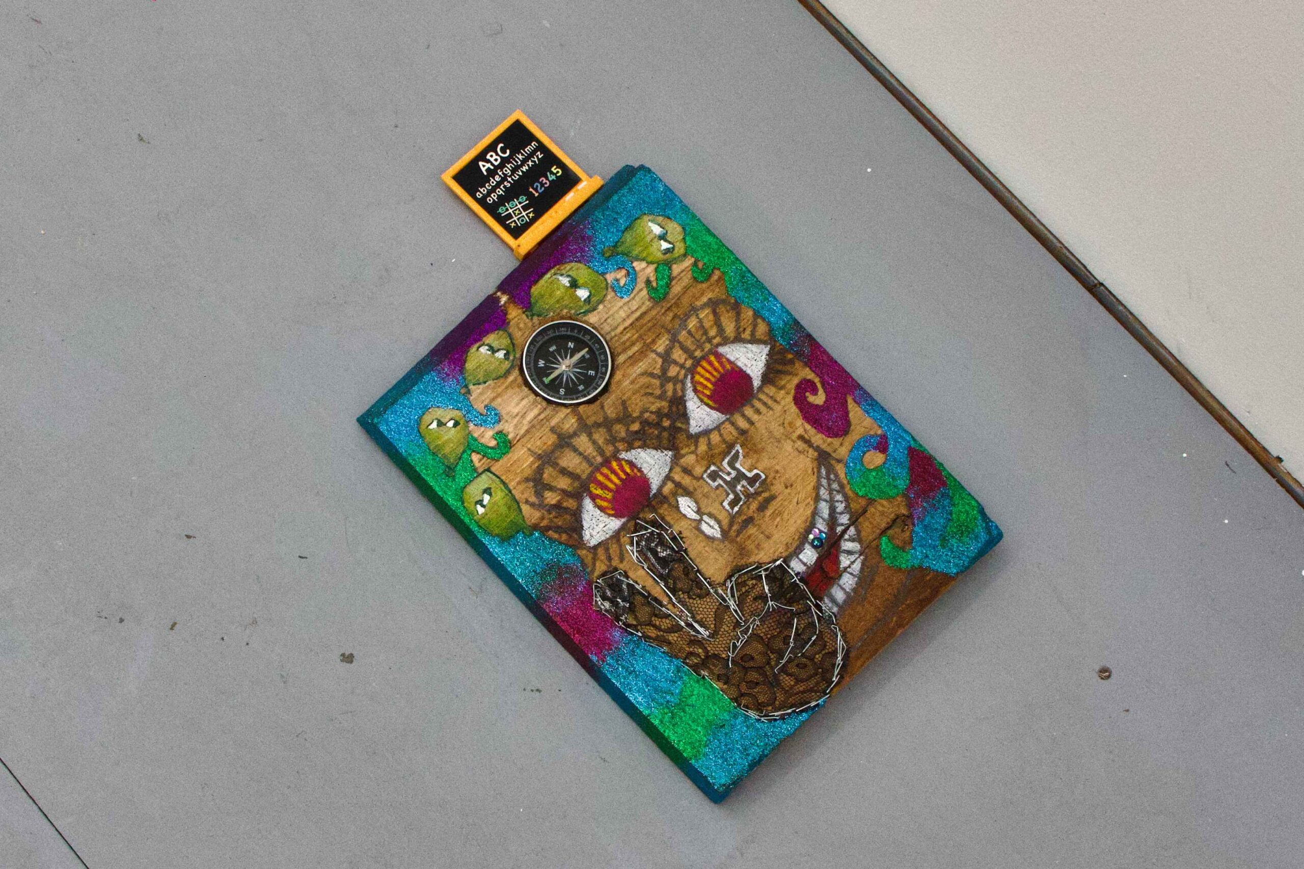 Grâce à la récupération, on peut y voir une certaine accessibilité de l’art. Myriam Boukrit montre que nous pouvons créer avec peu et avec ce qui nous entoure au quotidien. En l’occurrence pour elle des fournitures scolaires. N’importe quel support est exploitable, les boîtes de Smarties, le Plexiglass ou encore les planches de bois en sont un exemple. Le médium est fusionné, il n’y a plus de toiles et de peinture.