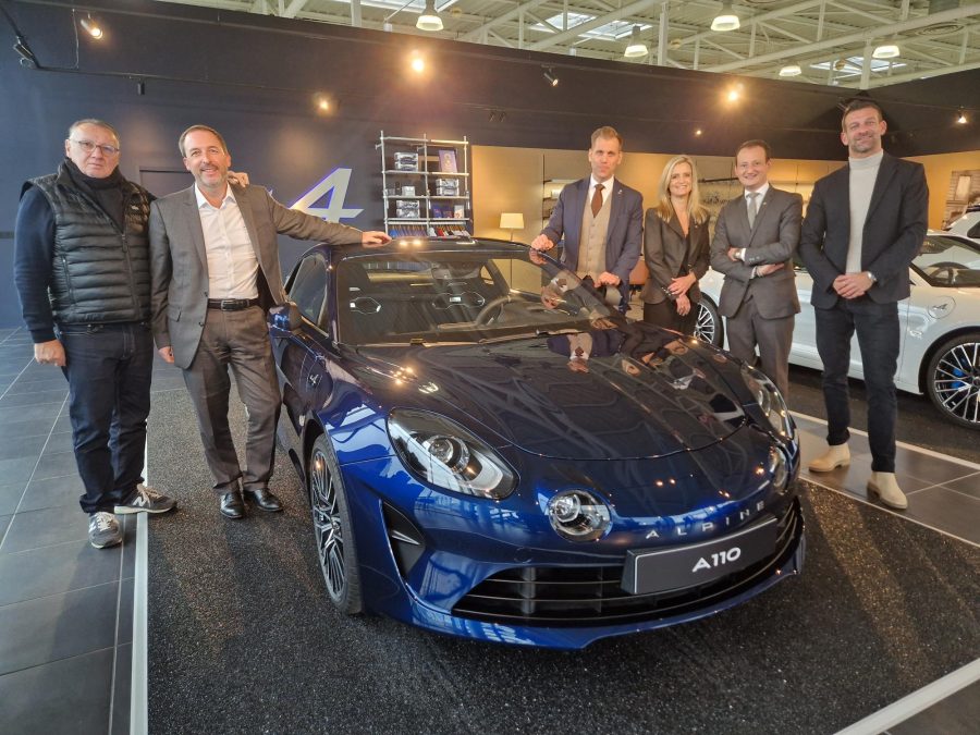 Marc Jean entouré de ses partenaires réunis dans le show-room Alpine de Vénissieux