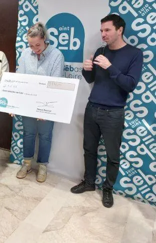 Delphine Cossard, la présidente de l’association Irise, avec son chèque.. © Photo PO