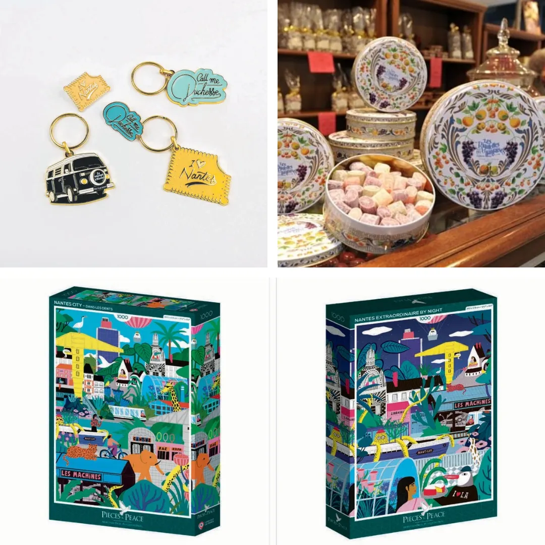 Quatre modèles de porte-clés disponibles à la boutique du Voyage à Nantes ou en ligne. | Rigolette, un juste équilibre entre acidité du fruit et sucre de sa coque. | Puzzles illustrés par Guillaume Denaud en 500 ou 1 000 pièces. © DAVID GALLARD | RIGOLETTES NANTAISES | LVAN