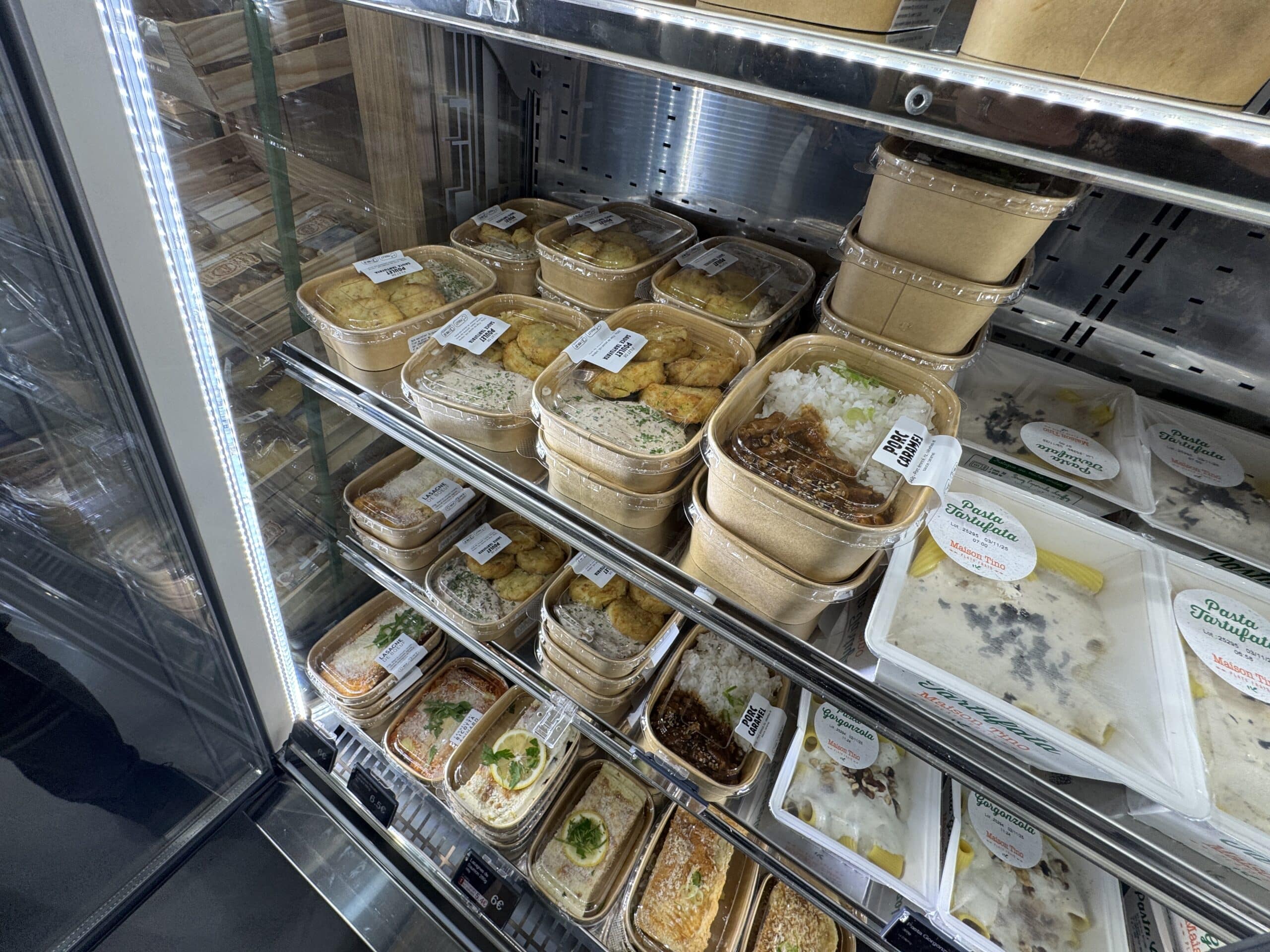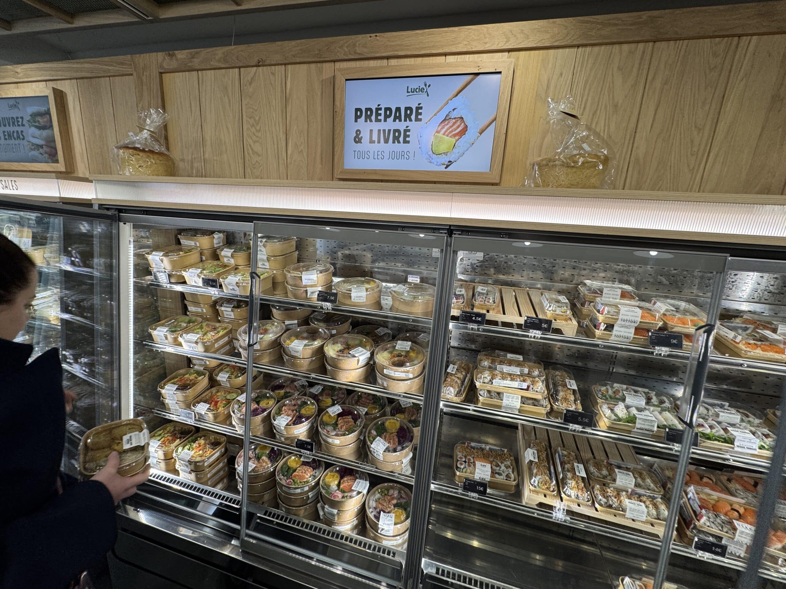 Sur les 25 à 50 m2 : une centaine de références de produits prêts à consommer : salades, pokes, plats cuisinés, sushis, des desserts et des boissons. Hors boissons, il s’agit de produits ultra-frais fabriqués à Agen par l’atelier de Lucie et livrés dès le lendemain. Une ultra-fraîcheur qui se remarque aisément à la dégustation (parce qu’évidemment j’ai testé, et pas qu’un plat !). Prix moyen : 6,50 €. Compétitif, même si les portions gagneraient à prendre un peu de poids 😉 .