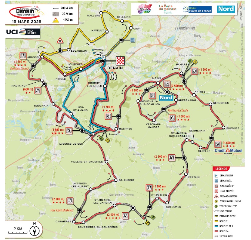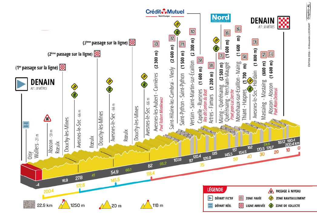 La 67e édition du Grand Prix de Denain (1.Pro) aura lieu en 2026 le jeudi 19 mars. 200,4 kilomètres figurent au programme de la deuxième manche de la FDJ United Series. Il y aura 13 secteurs pavés. Le vainqueur succédera au Britannique Matthew Brennan.