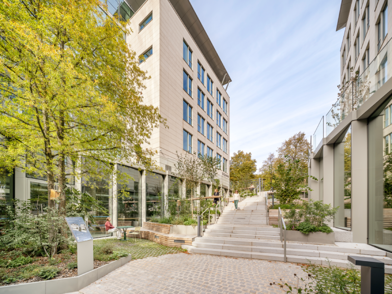 Grâce à une réhabilitation menée par une équipe rigoureuse et appliquée, les deux volumes autrefois séparés répondent aux diverses exigences environnementales et bousculent les standards du monde de travail. C’est un véritable tournant qui s’annonce à tous ceux qui auront la chance de pratiquer au quotidien les intérieurs généreux aux vues abondantes, les marches extérieures entourées d’une végétation luxuriante ou encore les terrasses aménagées avec goût par les paysagistes d’Arte Charpentier.