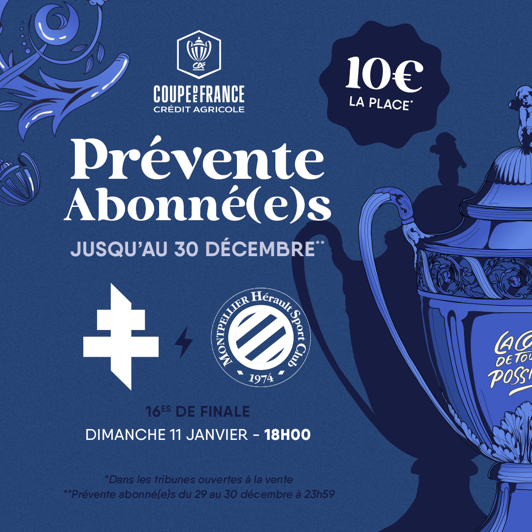 Le dimanche 11 janvier 2026, les Grenats accueilleront le Montpellier HSC, à l’occasion des 16es de finale de la Coupe de France Crédit Agricole. Le coup d’envoi de cette rencontre sera donné à 18h00.