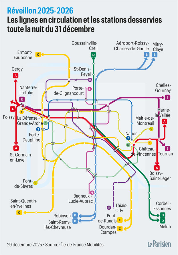 Quant au réseau de bus de nuit, il fonctionnera « comme une nuit de week-end classique », fait savoir Île-de-France mobilités. « Les usagers sont invités à planifier et calculer leurs trajets sur l’application Île-de-France Mobilités », conclut l’autorité.