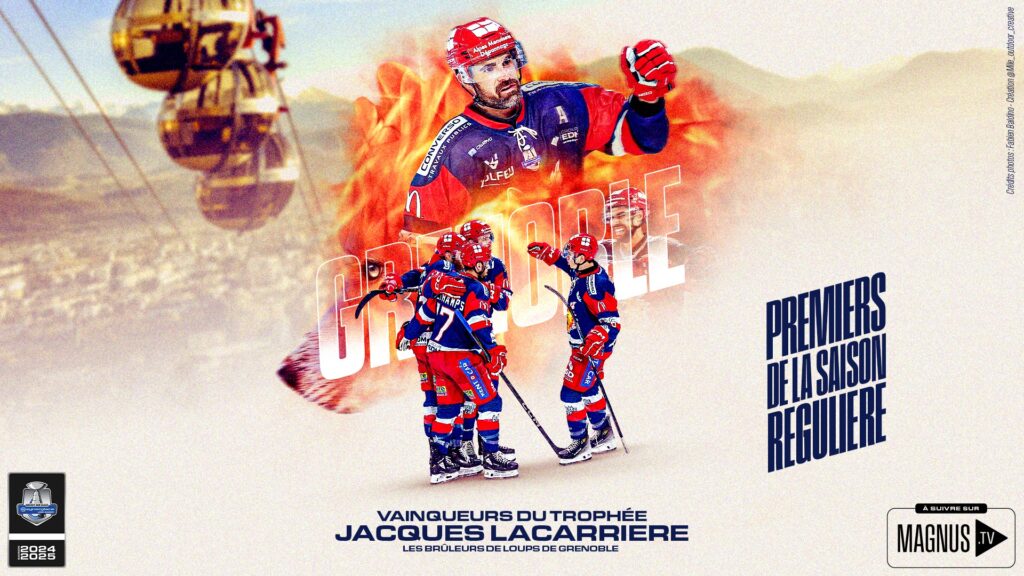 À 3 journées de la fin de la saison régulière 2024-2025, les Grenoblois s’assurent déjà de la première place du classement de Synerglace Ligue Magnus et remportent ainsi le trophée Jacques Lacarrière ! Depuis qu’il récompense la meilleure équipe de la saison régulière, c’est la 4ème fois que les BDL obtiennent cette récompense ! Aucune autre équipe française ne fait mieux !