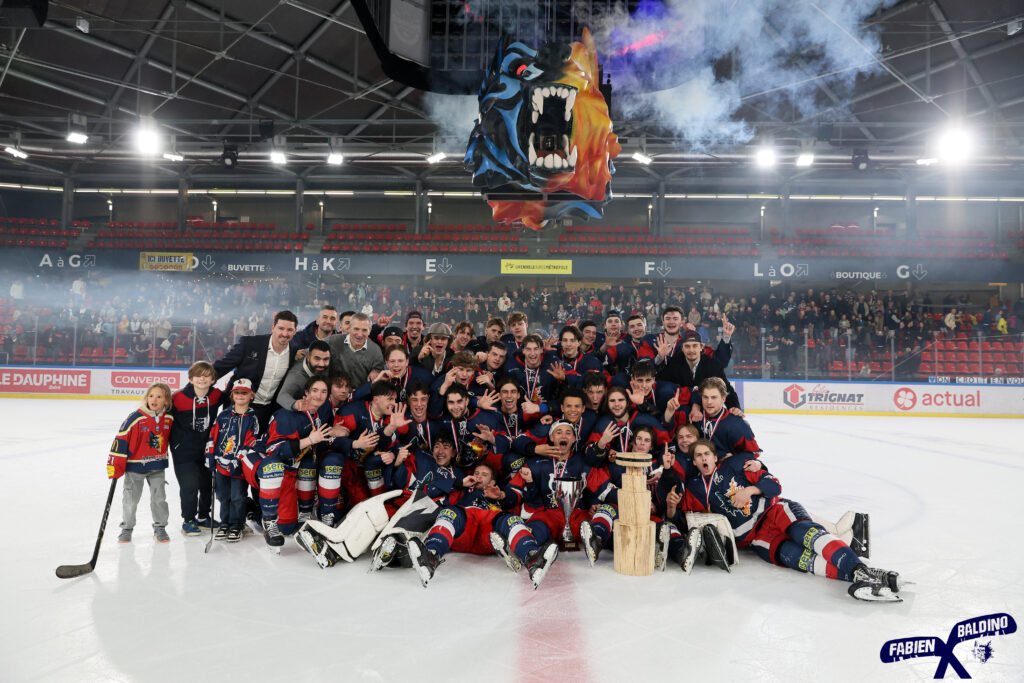Quelques heures après les U18, les U20 grenoblois ont eux aussi l’occasion de remporter le titre en cas de victoire contre les Drakkars de Caen. Les jeunes isérois dominent les débats et l’emportent 8-1 pour soulever leur 7ème trophée de champions de France U20 !