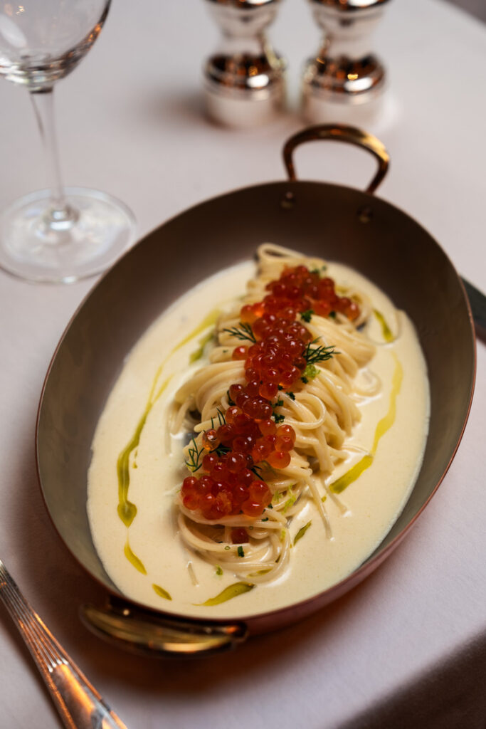spaghetti s’agrémentent d’œufs de saumon.