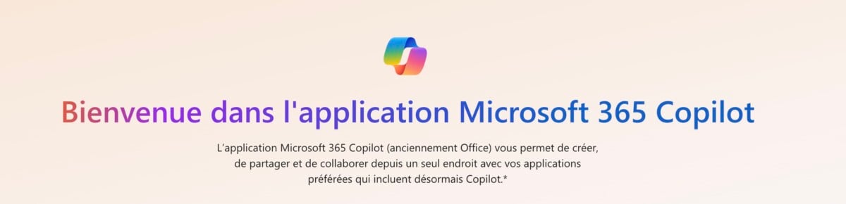 Microsoft 365 Copilot, c’est le renommage de l’application qui s’appelait jusqu’à présent Microsoft Office ou Microsoft 365 et qui permet de scanner des documents, ouvrir un fichier Word ou Excel, dans une application plutôt bien réalisée.