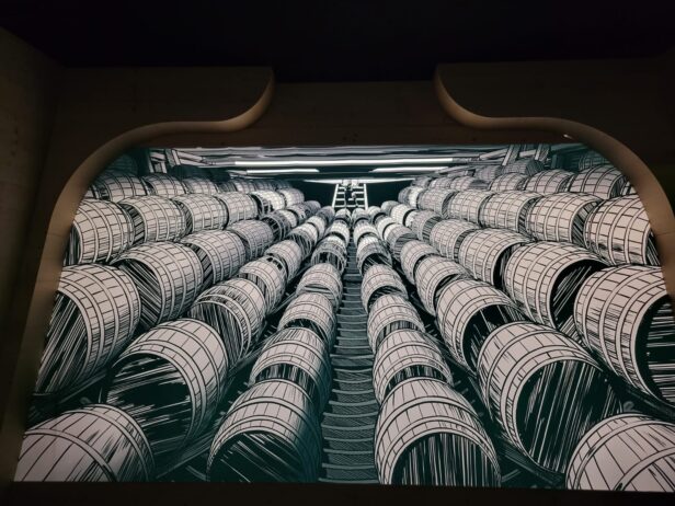 Une première salle vous invite à vous placer sur une grande carte maritime, partageant le monde du XVIe siècle entre les Espagnols et les Portugais. La cloche de la cathédrale de Séville sonne. C’est l’heure d’embarquer à bord de l’un des cinq navires confiés par le roi d’Espagne à Magellan le Portugais, nommé capitaine général de l’expédition. Avec cet objectif : rejoindre l’île aux épices et aux girofles, les Moluques, plus vite que les autres, et emporter ainsi une victoire maritime et commerciale ; et en pariant sur cette promesse : prendre, au milieu du nouveau continent découvert par Colomb, une voie de traverse, méconnue de tous.
