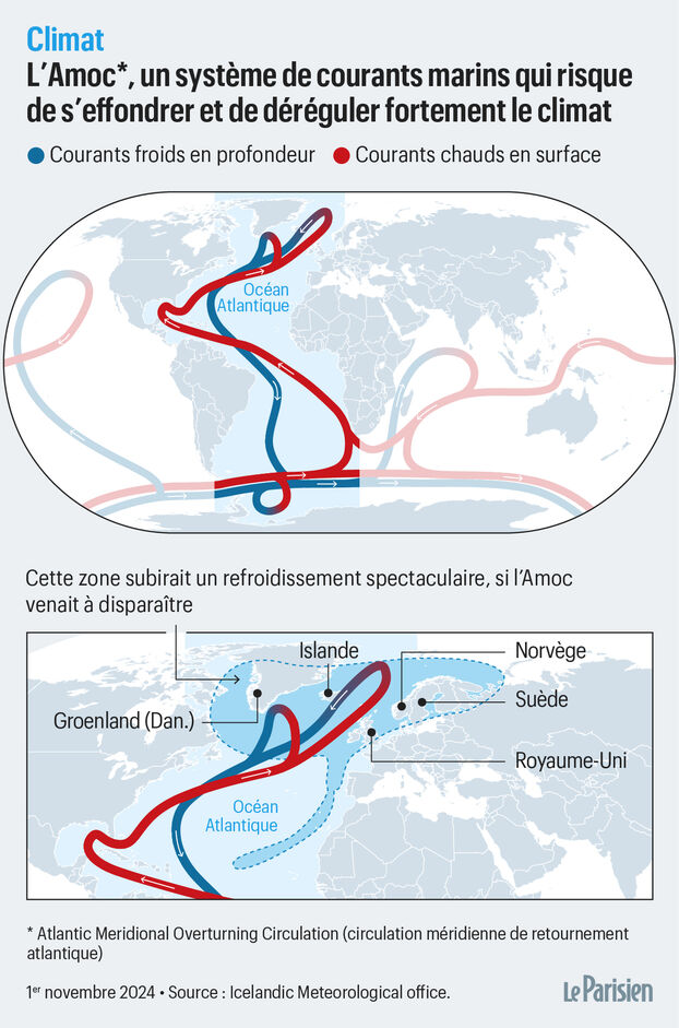 « Les conséquences, notamment pour les pays nordiques, seraient probablement catastrophiques », écrivaient les auteurs, qui évoquaient des « phénomènes météorologiques extrêmes sans précédent » et une « viabilité de l’agriculture en Europe du Nord-Ouest » menacée. En novembre, l’Islande a qualifié le potentiel effondrement de « menace existentielle ».