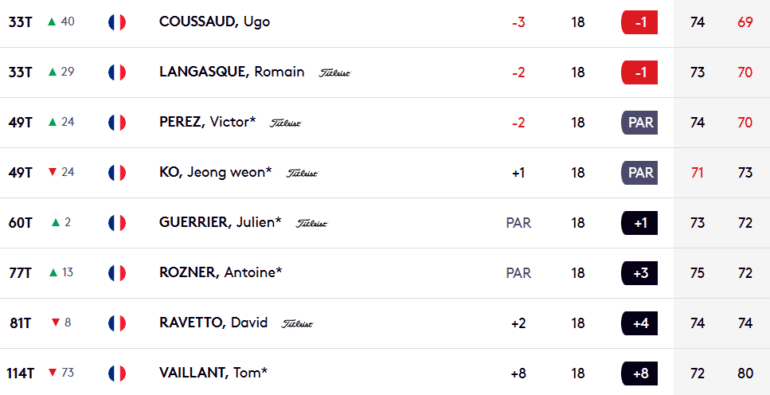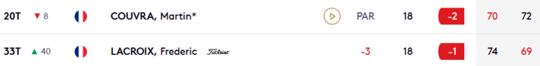 20e au leaderboard comme McIlroy, Martin Couvra est – pour l’instant – le chef de file du golf tricolore cette semaine. Le clan français qui valide la présence de sept des siens ce week-end. Seuls Antoine Rozner, David Ravetto et Tom Vaillant ne parviennent pas à franchir le cut fixé à +1. A l’instar du Chilien Joaquin Niemann, de Dustin Johnson, de Niklas Nørgaard, de Thriston Lawrence ou encore d’Eugenio Chacarra.