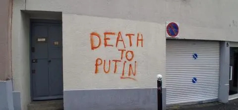 Mardi matin, plusieurs tags hostiles au président russe ont été découverts sur la façade de la galerie ainsi que sur des murs et immeubles situés à proximité immédiate. Sur les vitrines et les murs alentour, des inscriptions peintes à la bombe orange visaient explicitement le chef de l’État russe et la Russie, avec des messages tels que « Fuck Putin and all russians», « Death to Putin » ou encore « Poutine assassin ».