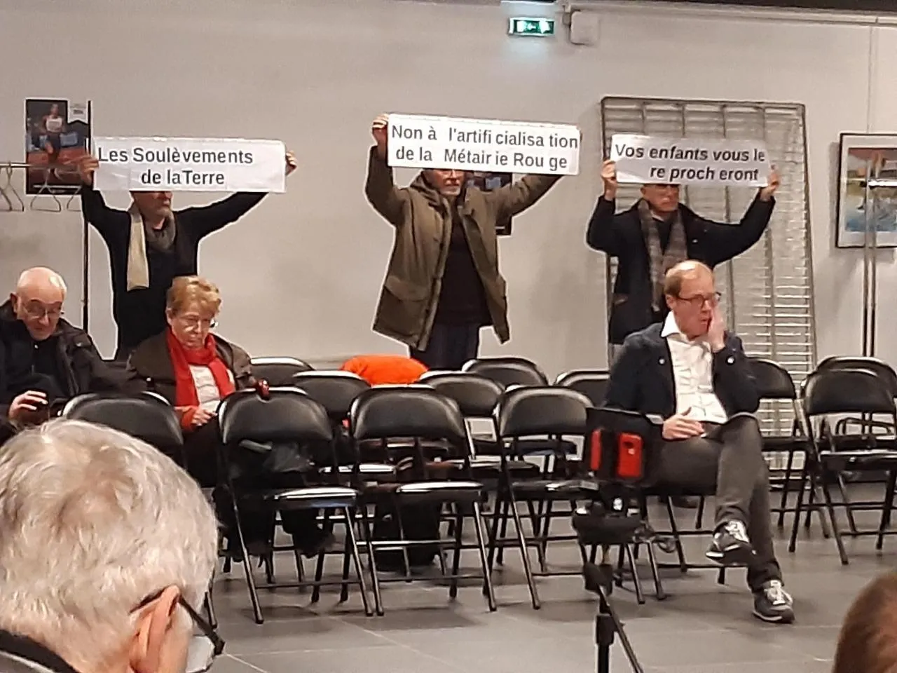 Le collectif d’associations écologistes des Soulèvements de la terre s’était invité au conseil municipal du 5 janvier 2024 pour manifester silencieusement contre la Zac. © Photo archives Presse Océan