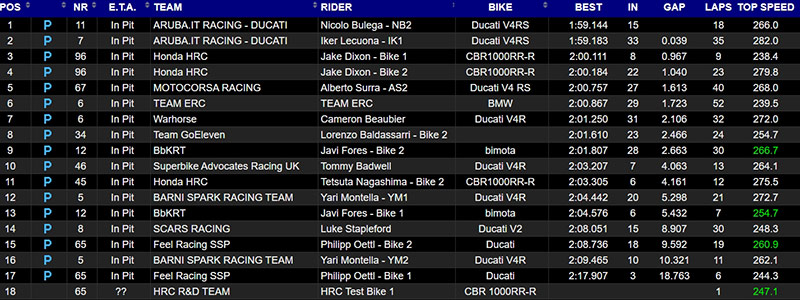 HRC) à Ryan Vickers (Honda HRC Test Team) jusqu’à