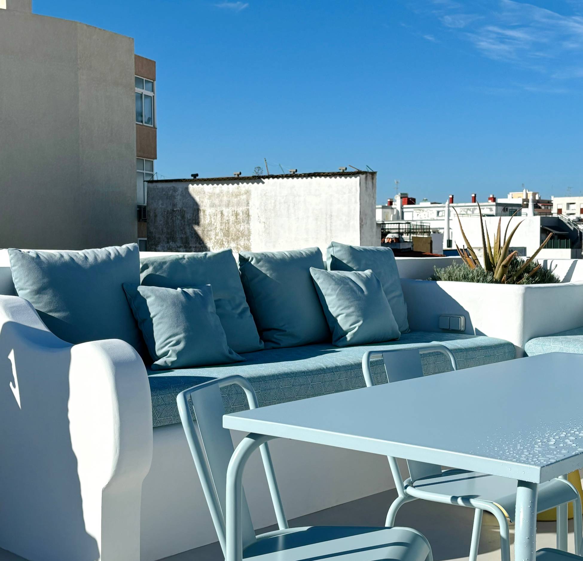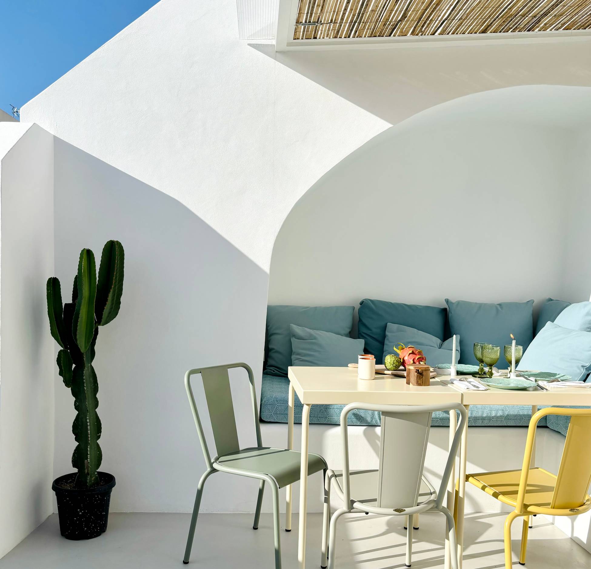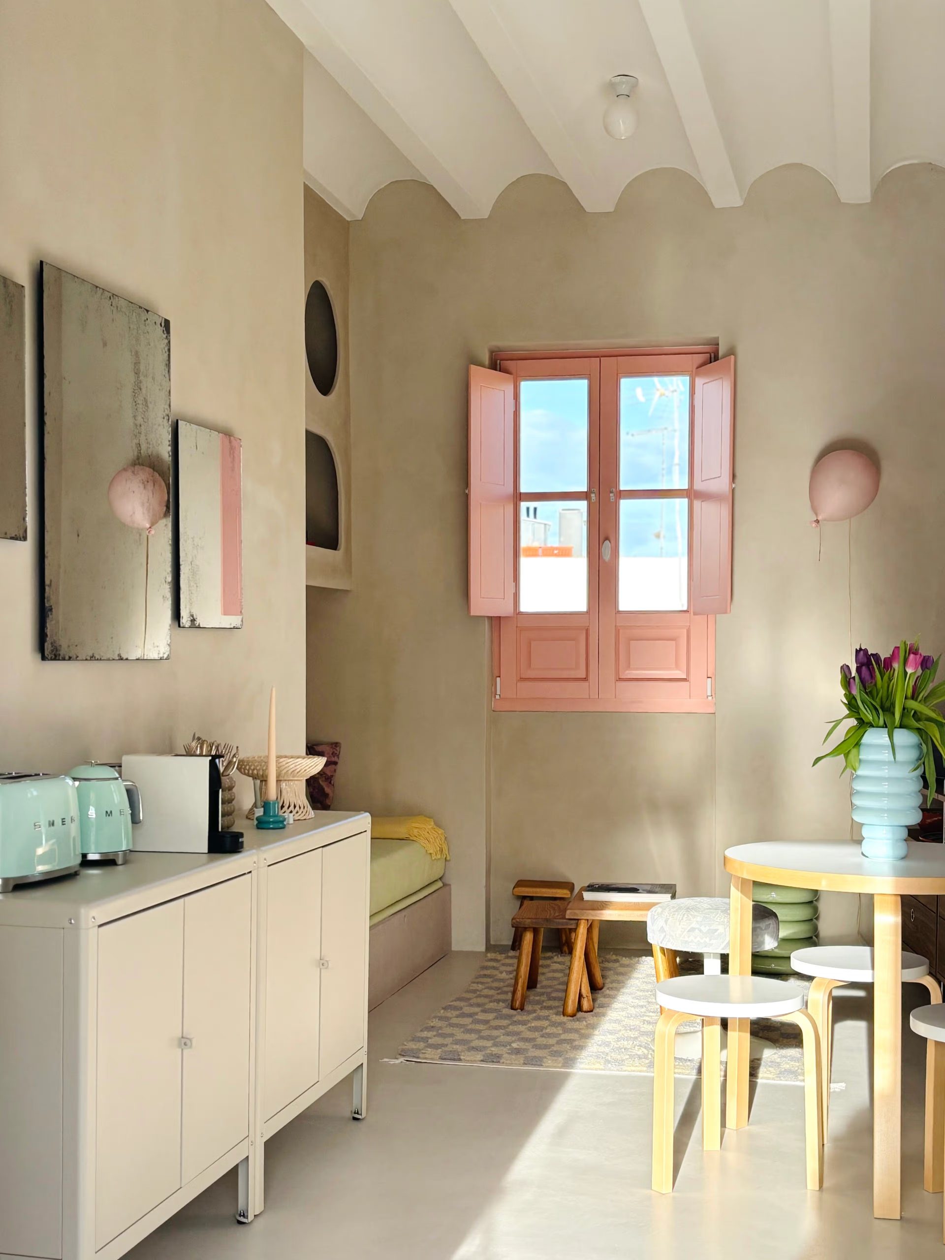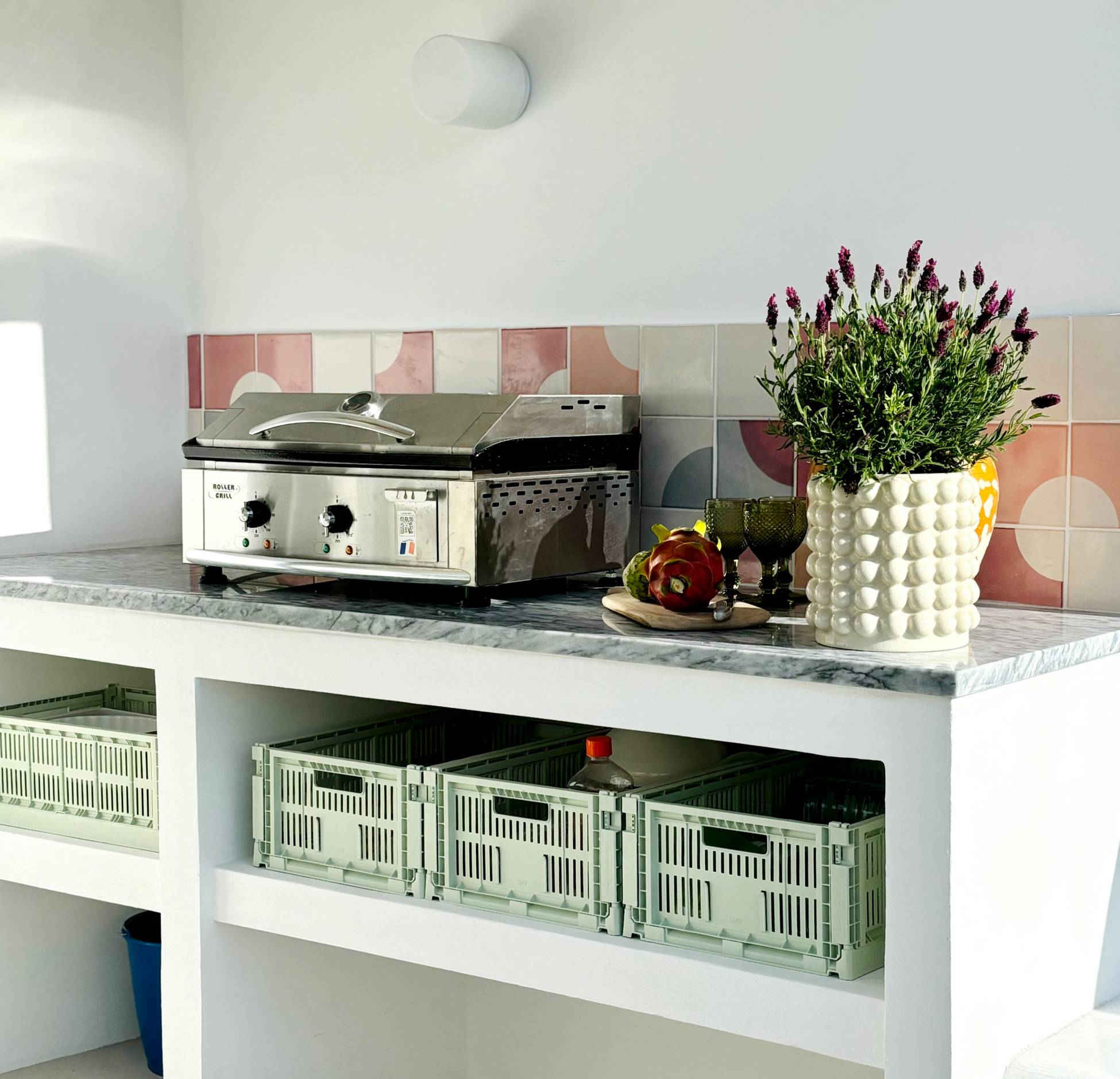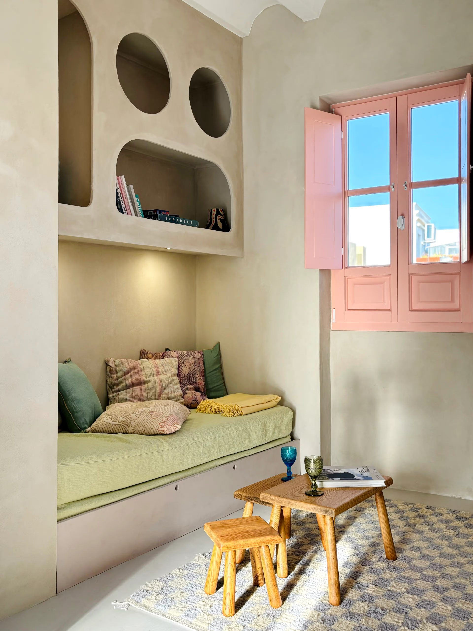 In the heart of Olhão, this little fisherman’s cottage in Portugal has been named ‘Casinha Bloom’. Renovated, it features a blend of pastel colours, local craftsmanship and Mediterranean spirit. Anne-Sophie, its owner, wanted to create a simple, pleasant place where everyone could immediately feel at home. The goal was clear from the outset: to create a welcoming, easy-going, bright home. Pastel colours therefore play an important role in the project. In the small kitchen, the powder pink and mint green cupboards are full of sweetness. The whitewashed walls add natural texture and are reminiscent of traditional southern homes.