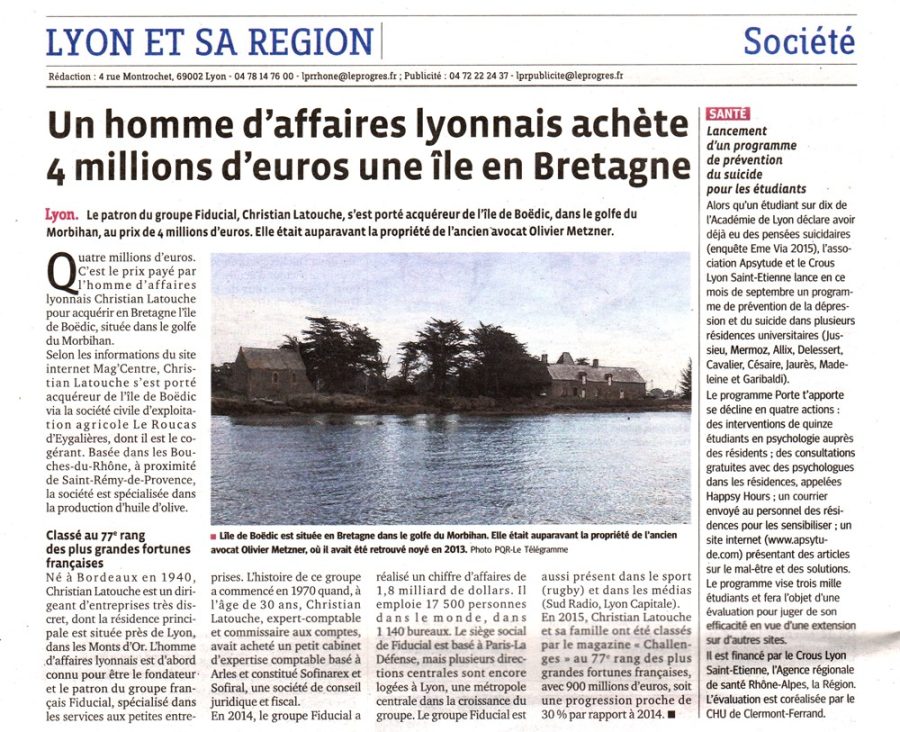 Parmi les pépites du patrimoine de Christian Latouche, l’île de Boedic achetée 4 millions d’euros en 2015 – Capture d’écran Le Progrès