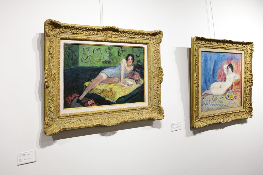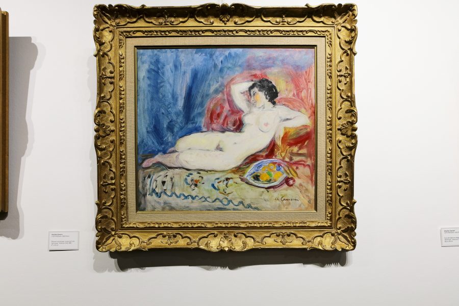 Les œuvres de Charles Camoin retiennent aussi particulièrement l’attention : Femme nue allongée coupe de fruits et Odalisque dans une pose lascive sur un lit. Francis Picabia artiste inclassable et René Seyssaudémerveilleront les passionnés de la peinture du XXème siècle. Jean Dufy héritant de l’influence de son célèbre frère Raoul Dufy peint dans un style lyrique et coloré reconnaissable entre mille l’effervescence de Paris… Henri Lebasque avec ses deux femmes nues sont deux petits fours dignes de Bernachon !