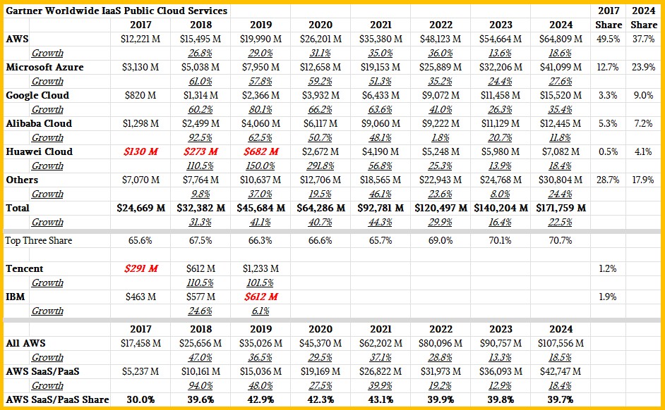 Remember this is just for IaaS, the renting of hardware capacity and does not include software and platform services that are sold separately.
