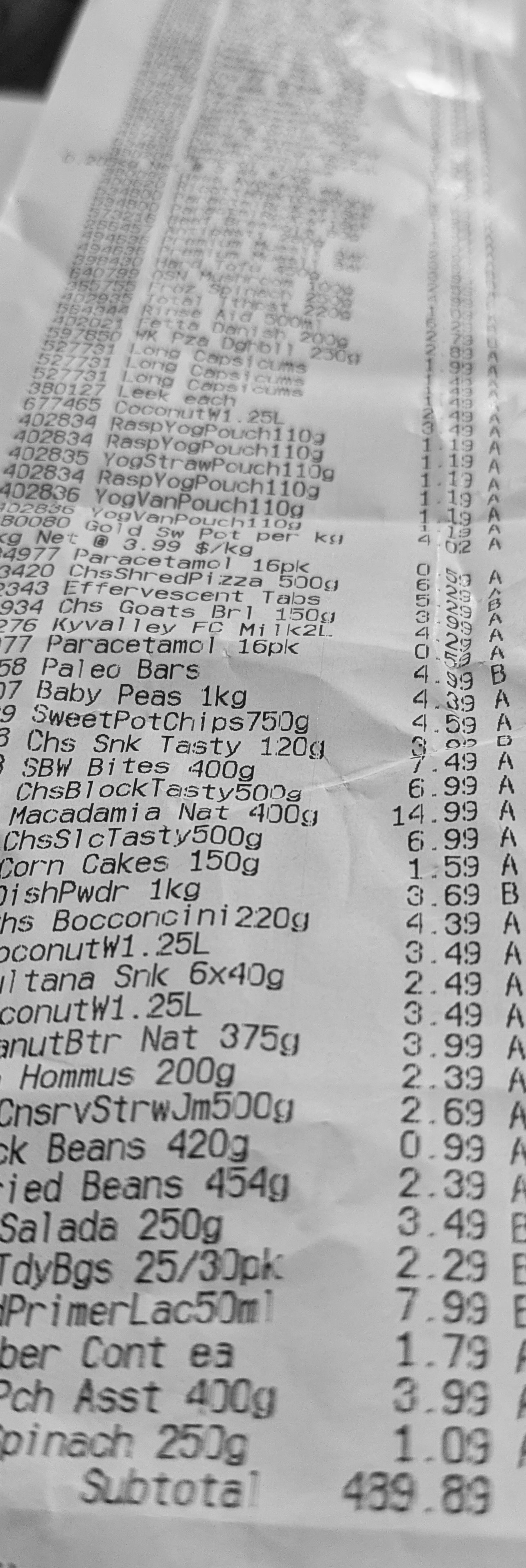 I spent $490 at the supermarket on the weekend. It was a big shop, we bought some wine, and some of the items will last ages… but still. That’s a lot of money for a grocery run (receipt appended). The cost of food has soared, as the next chart shows.