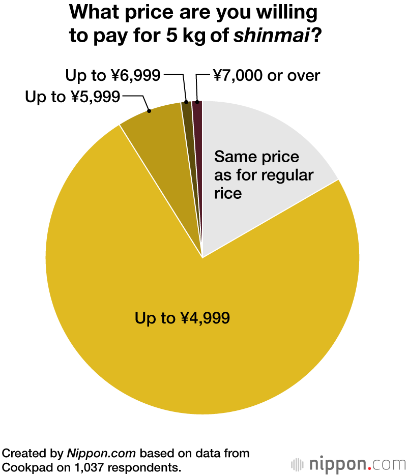 A survey, conducted in September by the recipe-sharing website Cookpad, asked 1,037 site users about their attitudes toward shinmai (newly harvested rice). In total, 88.9% in total stated they “want to buy shinmai,” but price proved to be an obstacle.